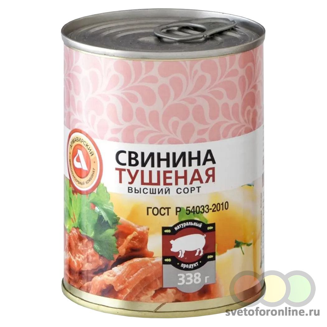 Свинина тушеная в/с., ГОСТ 338 гр. ООО АМКК - Купить в магазине "Светофор" город Уварово, ул. Первомайская, д.37
