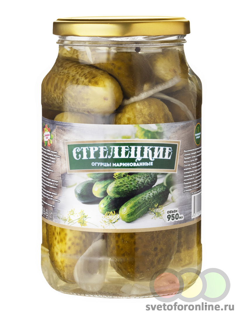 Огурцы маринованные "Стрелецкие" 950 мл,ст/б - Купить в магазине "Светофор" город Уварово, ул. Первомайская, д.37